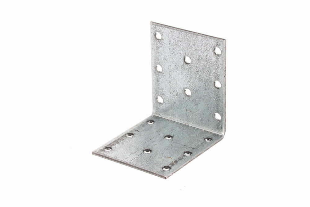 Равносторонний перфорированный уголок представляет собой стальную пластину, изогнутую под углом 90°, с отверстиями одинакового диаметра под многоточечный монтаж с помощью саморезов и гвоздей. Применяется в мебельном производстве, для соединения деревянных конструкций между собой и к основанию из дерева и металла, может использоваться для крепления балок, монтажа нагруженных несущих элементов из массивного бруса. Изготовлен из конструкционной стали с цинковым покрытием, обеспечивающим защиту от коррозии.