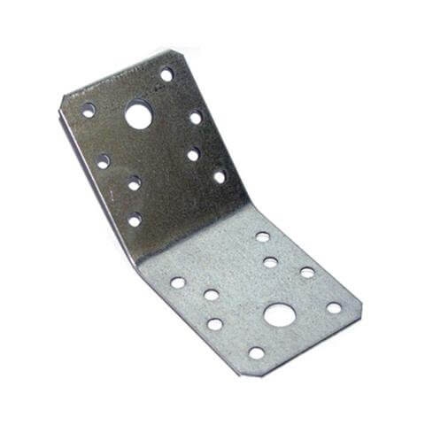 Материал: Оцинкованная сталь. Уголок крепежный под 135 градусов применяется в тех случаях, когда крепление необходимо проводить не под стандартным углом в 90 градусов, а в тех случаях, когда угол ровняется 135 градусам. Чаще всего используется для крепления стропил из дерева к основанию из кирпича или бетона. Изготавливается уголок из стали холодной накатки, визуально представляет 2мм пластину загнутую под углом в 135 градусов с различными отверстиями для крепежа. Данный вид крепежа не пользуется большой популярностью, так как имеет отличный от стандарта угол, но для углового крепления в 135 градусов, у него идеальные характеристики. Материал основания: Дерево, кирпич, бетон