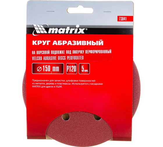 Круг абразивный перфорированная на ворсовой основе под "липучку" 150 мм Р120 5 шт Matrix