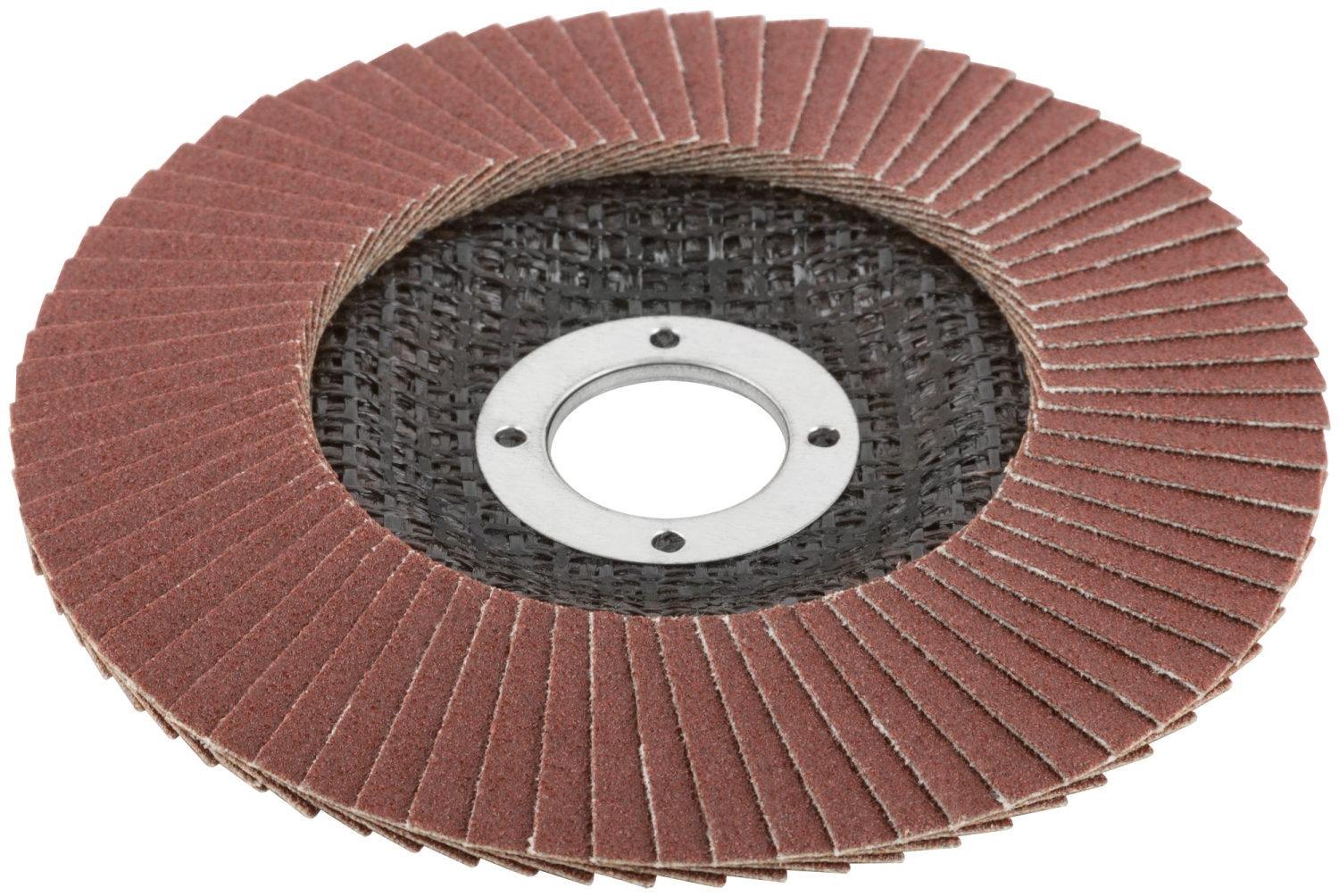 Круг класса "МАСТЕР "для повседневного использования.При изготовлении используется гибкий абразивный материал состоящий из тканевой основы на которую нанесен оксида алюминия --Корунд,Произведено с использованием технологии и контролем качества CUTOP.Наполняемость диска составляет 72 лепестков с углом наклона 10 градусов, что позволяет увеличить площадь контакта обрабатываемой поверхности и КПД круга Предназначен для обработкт металла . Для углошлифовальных машин. Посадочный диаметр 22,2мм