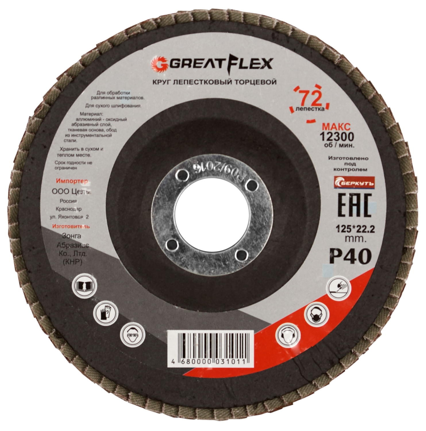 Круг лепестковый торцевой GREATFLEX (72 лепестка) 125х22,2 мм Р36