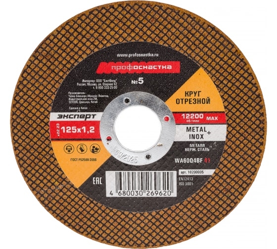 Круг отрезной мет+нерж №05 125х1,2х22 мм Профоснастка Эксперт тип 41