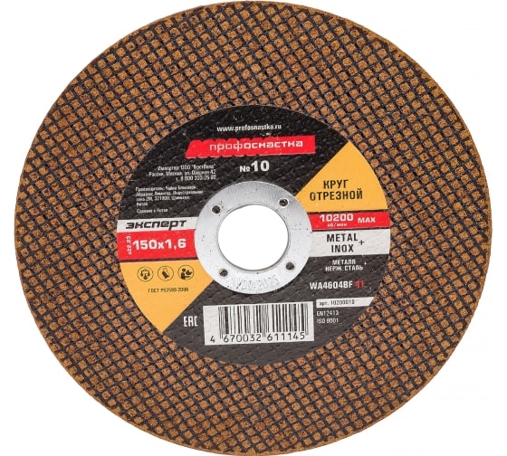 Круг отрезной мет+нерж №10 150х1,6х22 мм Профоснастка Эксперт тип 41