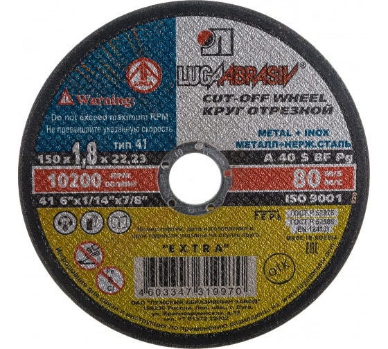 Круг отрезной мет+нерж 150х1,8х22 мм A 40 S BF 80 Луга D11001502218000 1 шт.
