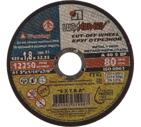 Круг отрезной мет+нерж 125х1,8х22 мм A 40 S BF 80 Луга D11001252218000 1 шт.