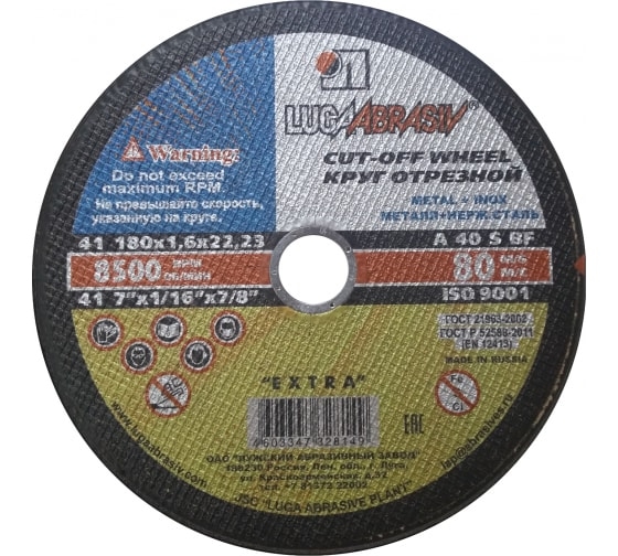 Круг отрезной мет+нерж 180х1,8х22 мм A 40 S BF 80 Луга D11001802218000 1 шт.