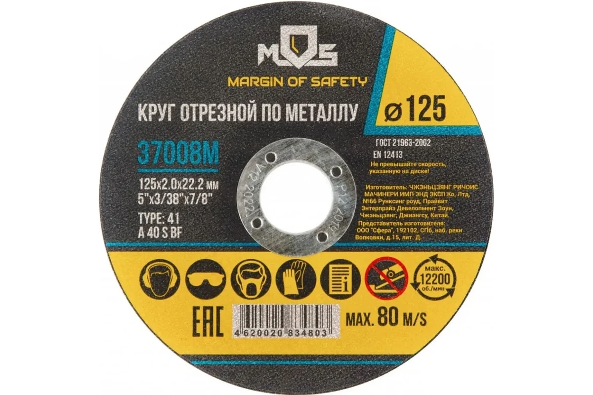Круг отрезной по металлу 125х2,0х22,2 мм MOS