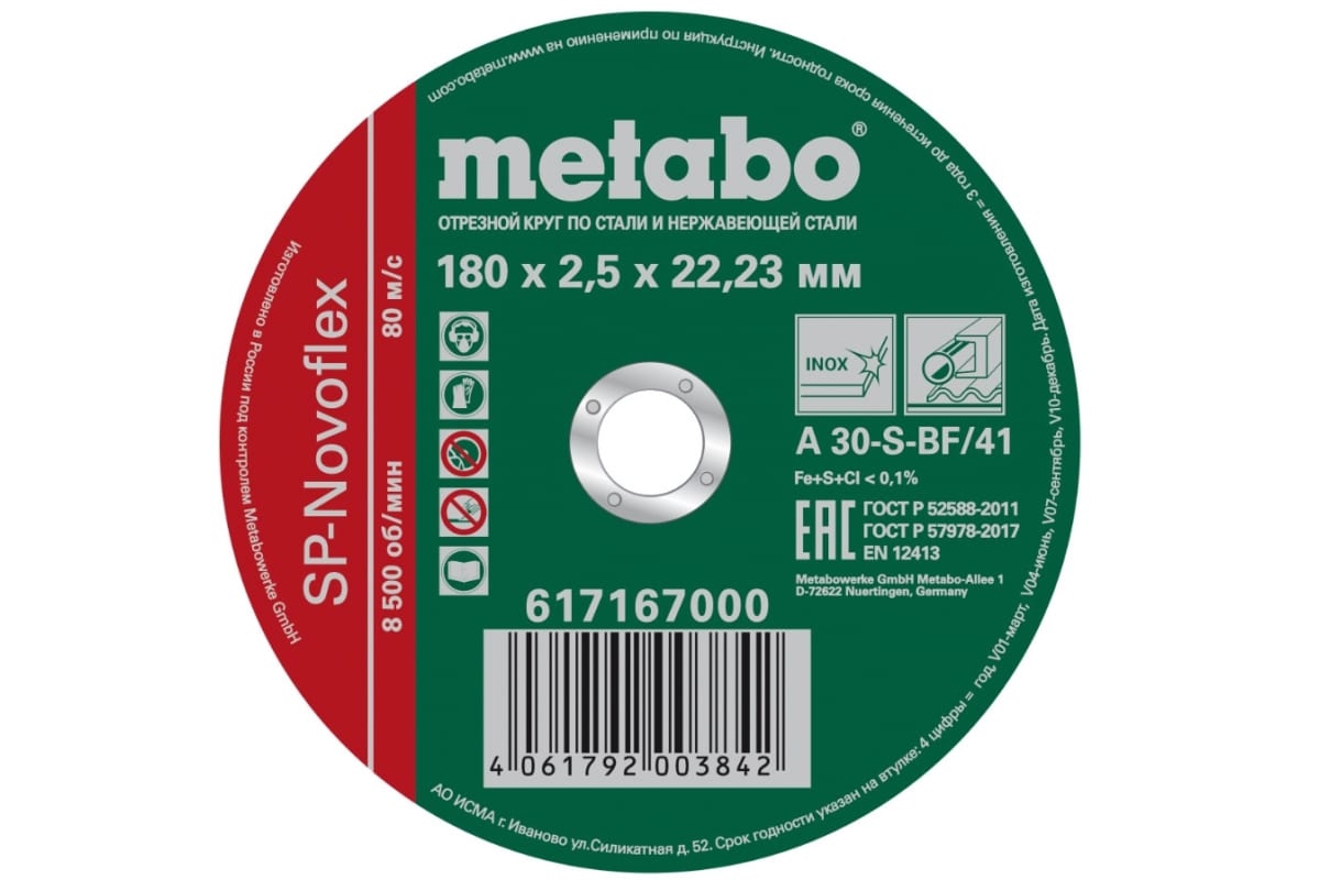 Круг отрезной SP-Novorapid Metabo 617167000 предназначен для ручных резчиков. Применяется для работы с нержавеющей сталью или другими тонкостенными материалами (трубы, листовой металл, профили, проволока и т.д). Круг обладает высокой производительностью и большим ресурсом работы.