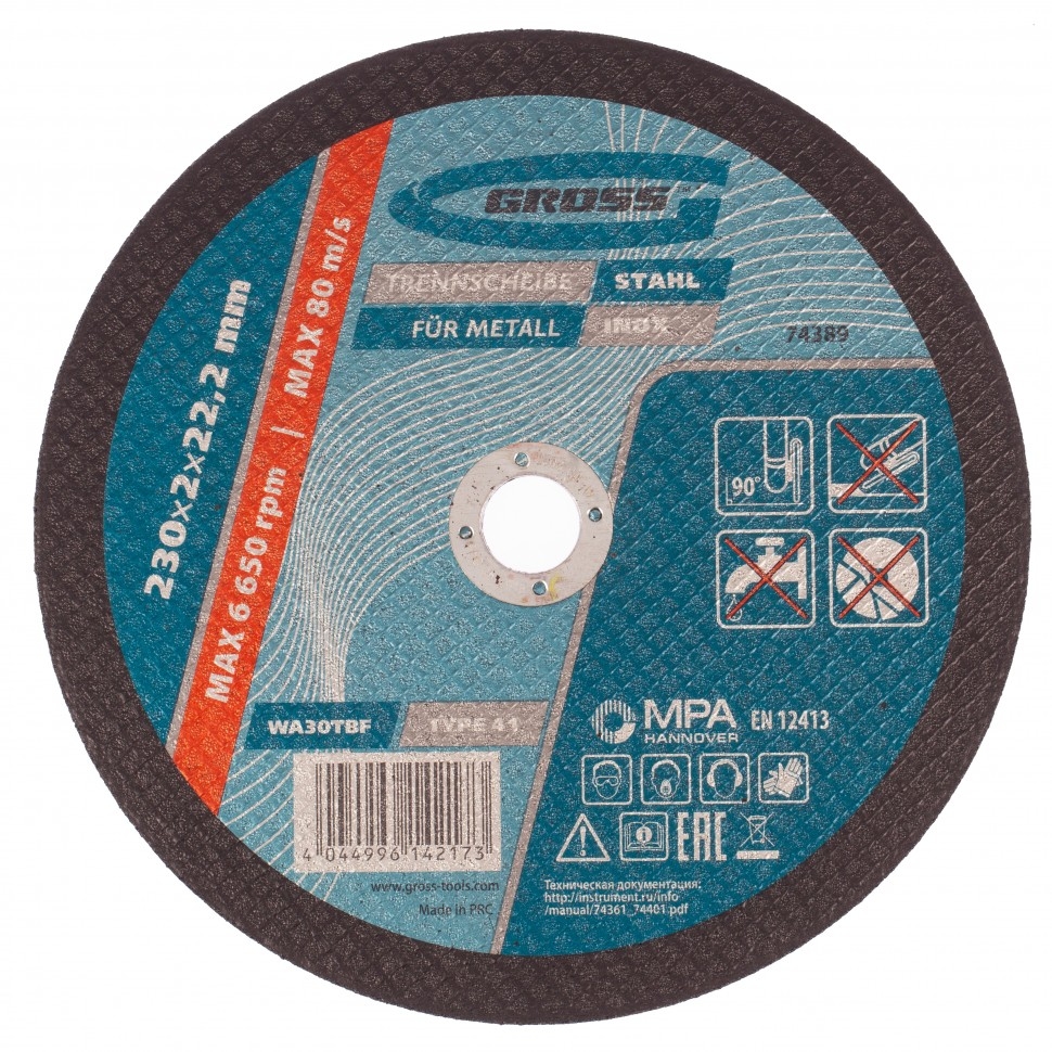 Круг отрезной по металлу 230х2.0х22,2 мм WA36TBF Gross