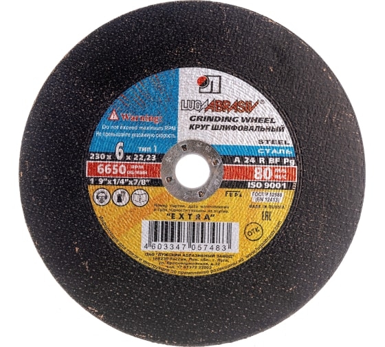 Диск шлифовальный по металлу 230х22х6 мм, А24 Луга D11202302260000 предназначен для шлифовки разного рода металлических поверхностей, а так же снятия коррозионного налета с деталей и изделий.