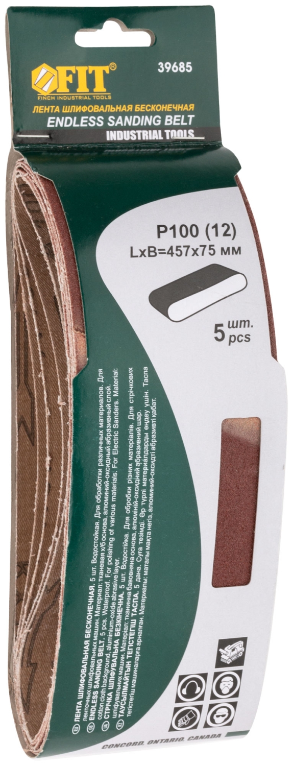 Ленты шлифовальные бесконечные, водостойкие, тканевая основа, 75 х 457 мм, 5 шт. Р 100