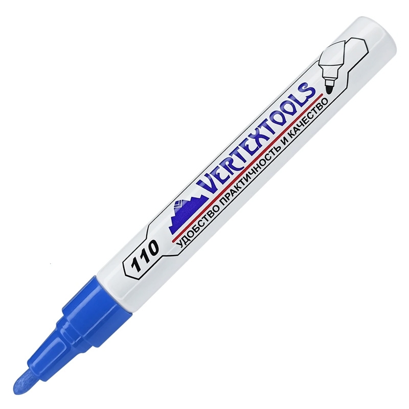 Маркер краска строительный, синий используется для нанесения надписей на стекло, металл, бетон, пластик, дерево, текстиль, резину, включая влажные, шершавые, масляные, пористые поверхности. Не выгорает на солнце. Краска устойчива к механическим воздействиям. Толщина линии - 4 мм.