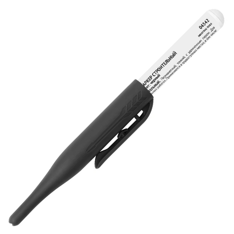 Маркер строительный перманентный тонкий, удлиненное перо, черный