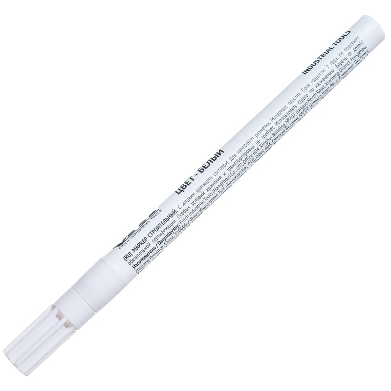 Маркер строительный 138х11 мм с жидким красящим составом, белый предназначен для нанесения разметочных линий на различных поверхностях во время строительных или ремонтных работ. Белый цвет маркера обеспечивает хорошую видимость линий на тёмных материалах. Благодаря жидкому красящему составу можно получить чёткие и яркие метки. Конкретные особенности маркера, такие как толщина линии или материал корпуса, не указаны, но предполагается, что он подходит для работы с различными поверхностями, включая картон, металл, пластик, стекло и другие.
