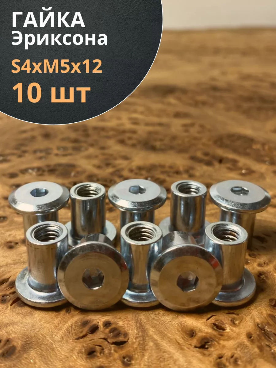 Мебельная гайка Эриксона М5 с полукруглой головкой, 10 шт.
