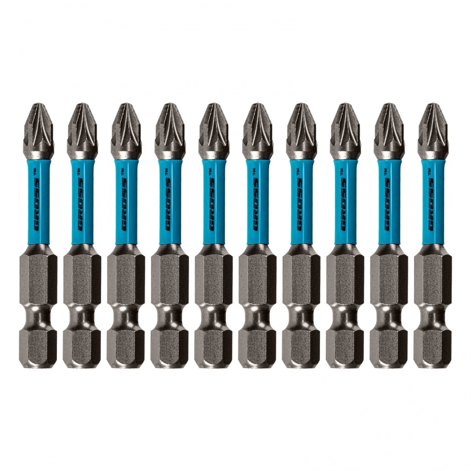 Набор торсионных бит PZ2 x 50 мм Gross 11495, 10 шт., предназначен для монтажа и демонтажа резьбовых соединений с помощью ударного шуруповерта. Он незаменим в строительных, слесарных и монтажных работах, в автосервисах, при проведении ремонта в доме. Торсионная зона способна пружинить, за счет чего она частично амортизирует тангенциальный удар от шуруповерта. Такое решение позволяет равномерно распределить нагрузку по бите и избежать поломки шлица. Продуманная конструкция — торсионная зона позволяет работать ударным шуруповертом даже с особо твердыми поверхностями без риска поломки бит.