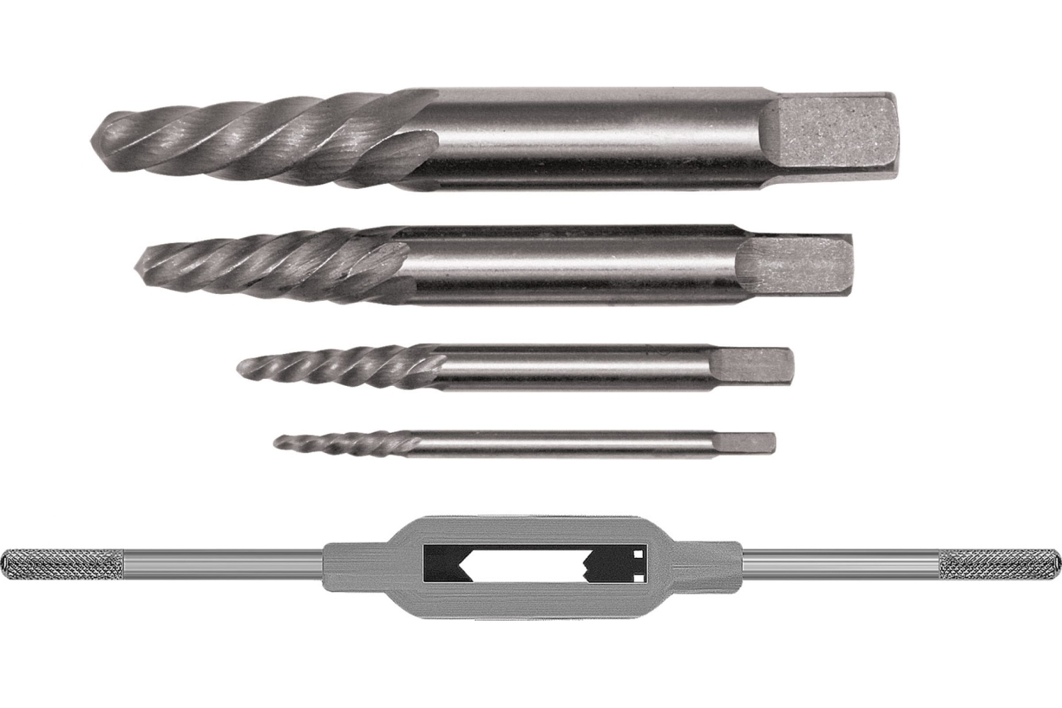 Набор экстракторов с метчикодержателем,быстрорежущая HSS сталь, Профи 4шт.
