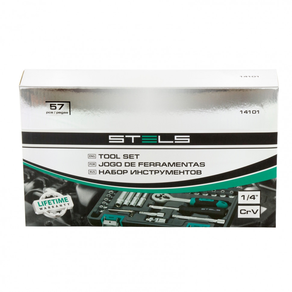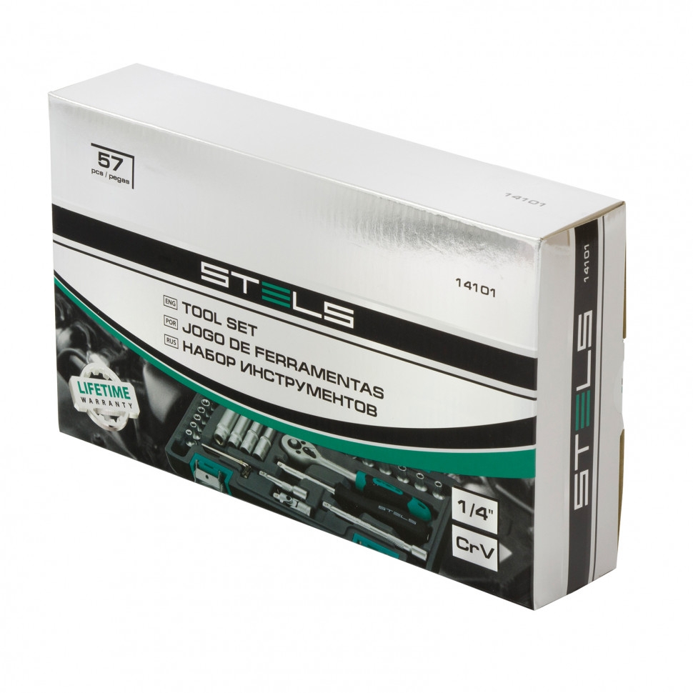 Набор инструментов Stels 14101 в пластиковом кейсе включает в себя 57 предметов с хвостовиком 1/4 дюйма из стали марки CrV. Он применяется для монтажа и демонтажа резьбовых соединений при обслуживании и ремонте авто, а также при выполнении бытовых задач. Инструменты пригодятся автолюбителям и домашним мастерам.Преимущества Трещотка с 72 зубьями вращает крепеж мягко и плавно, что повышает удобство работы. Все детали набора имеют повышенную прочность и износостойкость, т.к. изготовлены из высококачественной стали хромованадиевой группы и термически обработаны Матовое антикоррозийное покрытие надежно защищает инструменты от разрушения. Благодаря эргономичной рукоятке из полипропилена и резины трещотка удобно ложится в руку и не разрушается от воздействия бензина и масла. Механизм быстрого сброса позволяет легко менять насадки на трещотке. Набор поставляется в пластиковом ударопрочном кейсе с металлическими замками, поэтому его легко транспортировать и удобно хранить.