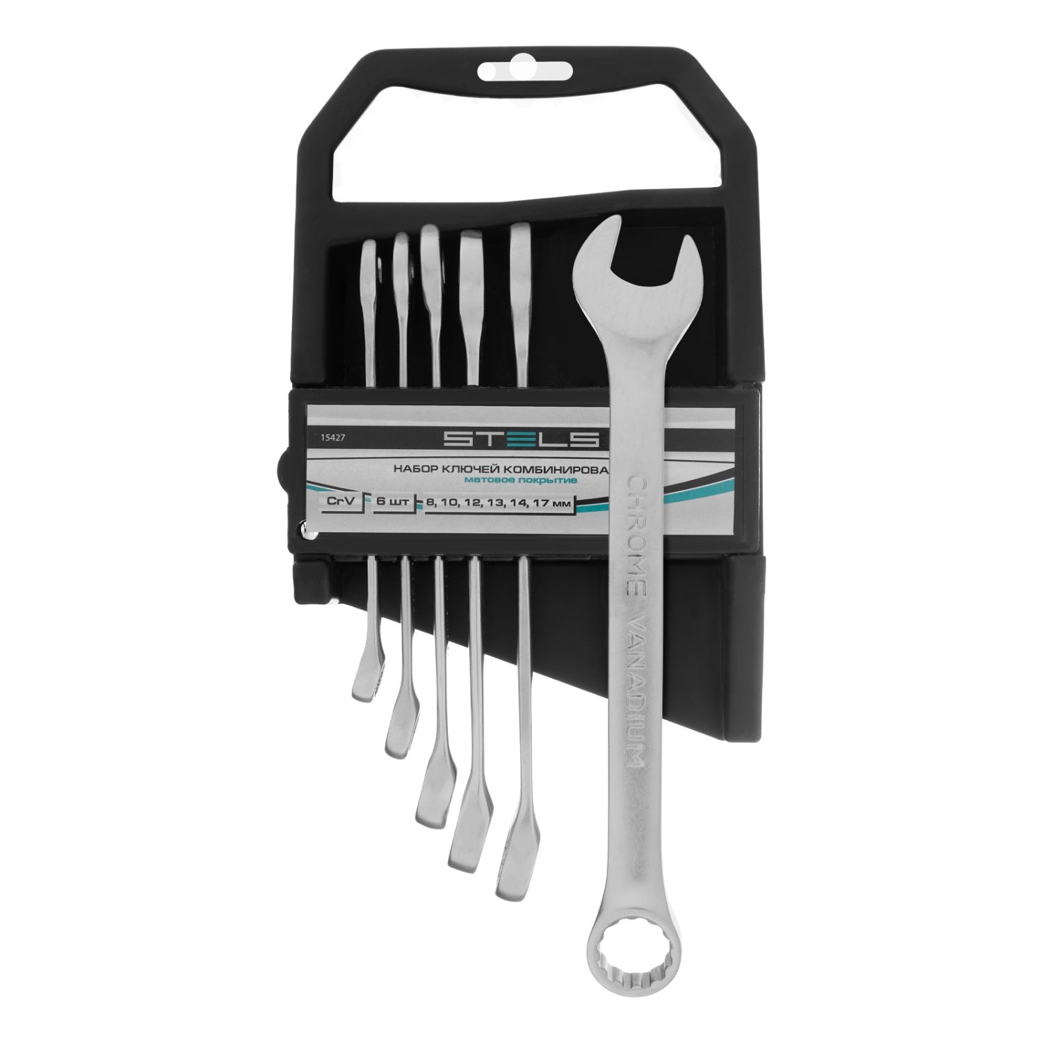 Набор ключей комбинированных 8-17 мм 6 шт CrV, матовый хром Stels