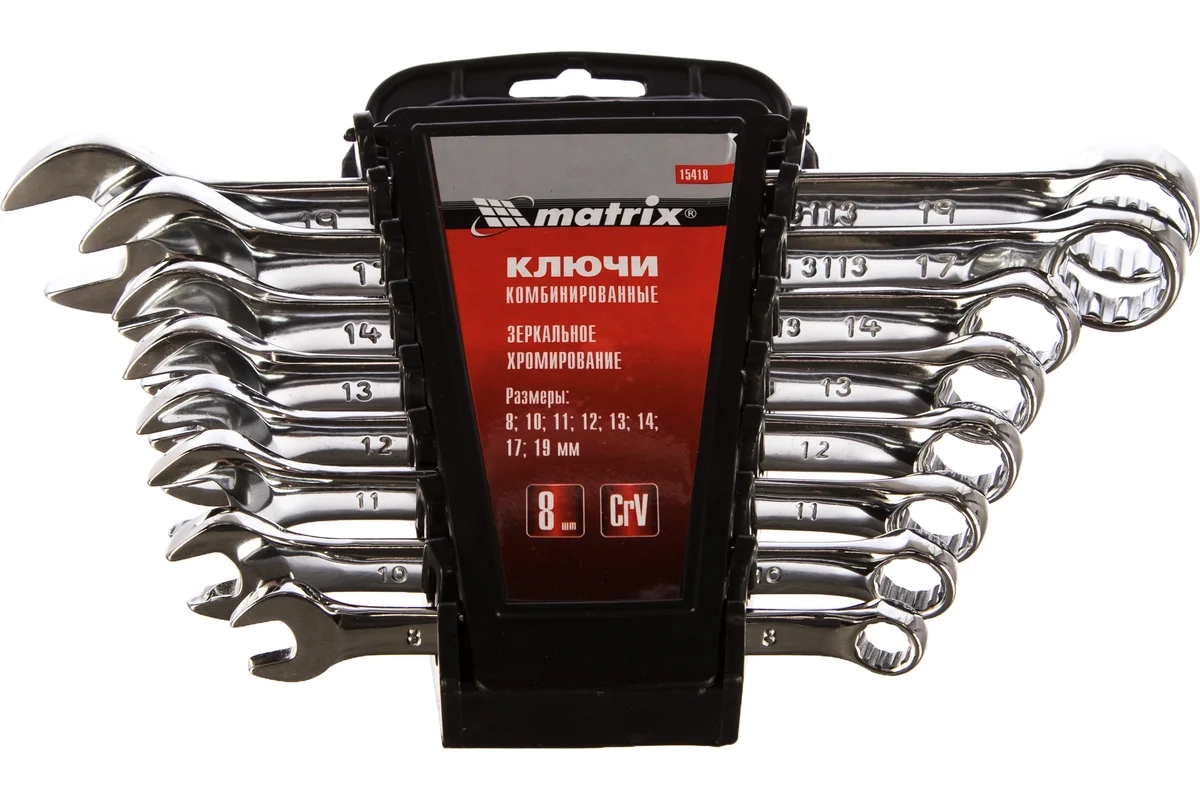 Набор ключей комбинированных 8-19 мм 8 шт CrV, полированный хром Matrix