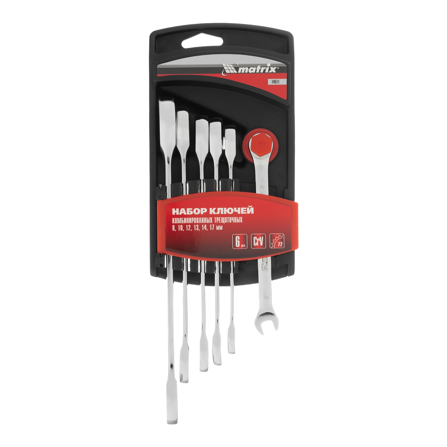 Набор ключей комбинированных трещеточных 8-17 мм CrV 6 шт Matrix