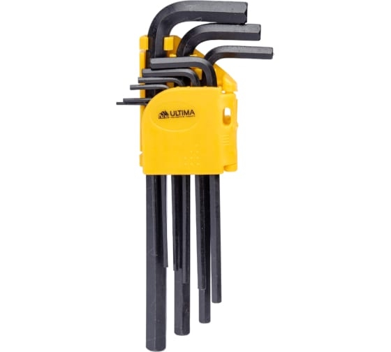 Набор шестигранных ключей Ultima удлиненные, 9 шт в наборе, 1.5-10 мм, сталь CrV 122004 предназначен для работы с крепежом, оснащенным внутренним шестигранным гнездом. При работе в труднодоступных местах длинный конец используется как рабочий. Ключи изготовлены из хромованадиевой стали, что обеспечивает прочность, стойкость к износу и долговечность.