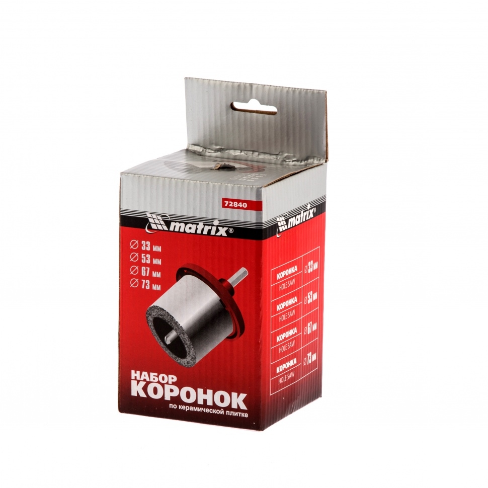 Набор коронок по керам. плитке, шестигранный хвостовик 33-53-67-73 мм Matrix