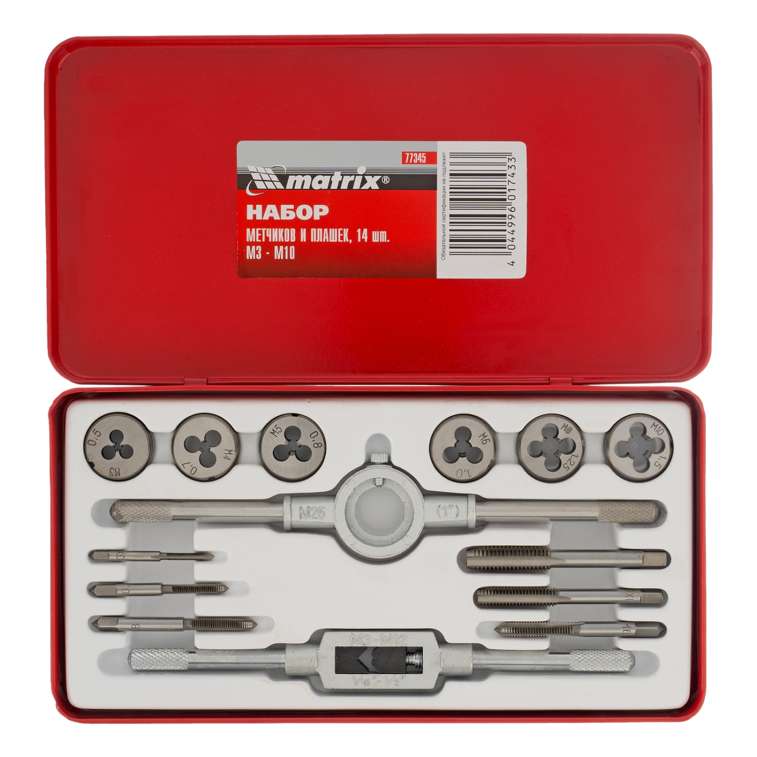 Набор метчиков и плашек М3 - М10, 14 шт. MATRIX MASTER 77345 прекрасно подходит для профессионального использования. Резьбонарезные инструменты, входящие в данный набор, изготовлены из инструментальной легированной стали.