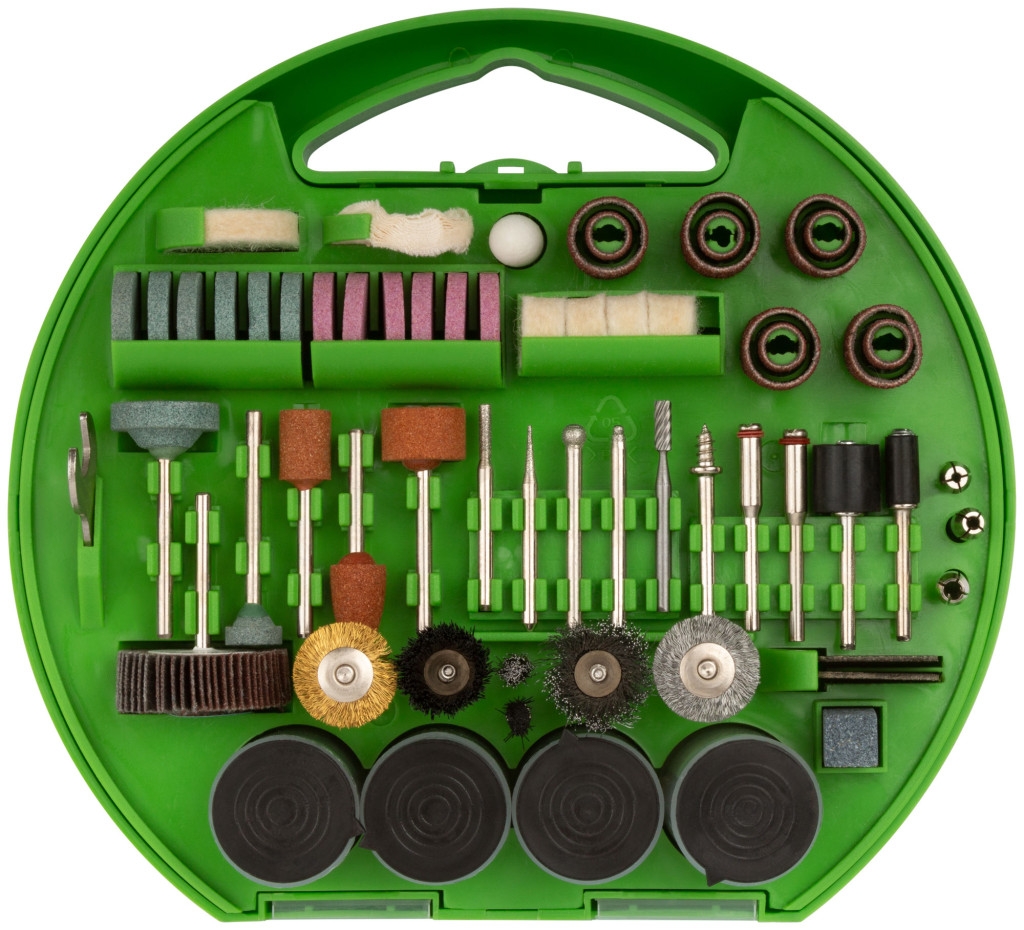 Для гравировальной машины. Для обработки различных материалов. В наборе: трубки наждачные, круги войлочные, насадка войлочная, круг хлопковый, шарошки абразивные, шарошки алмазные, шарошки из быстрорежущей стали, патроны цанговые, держатели для полировальных насадок. Упаковка: пластиковая коробка.