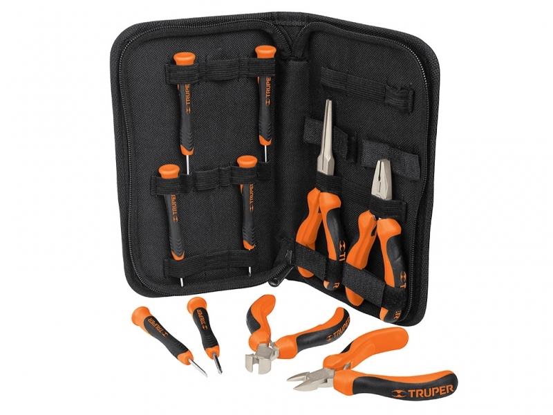 Набор из 10 миниотверток и миниплоскогубцев Truper JGO-MP-DJ 18200 предназначен для работы с резьбовыми соединениями, их удержания, монтажа или демонтажа. Рабочие части выполнены из кованной стали, прочной и долговечной. Рукоятки не скользят в руке, тем самым обеспечивая лучший контроль над инструментом. Набор состоит из миниотверток и плоскогубцев. Двухкомпонентные рукоятки не скользят в руке, что позволяет лучше контролировать инструмент. Рабочая часть набора из 10 миниотверток и миниплоскогубцев Truper JGO-MP-DJ 18200 выполнена из кованной стали, стойкой к нагрузкам и прочной.