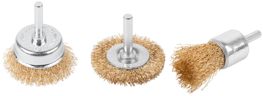 Набор щеток для дрели 3шт., 2 "чашки" 25,50 мм 1 "Плоская" 50 мм латунир.витая проволока CUTOP Profi