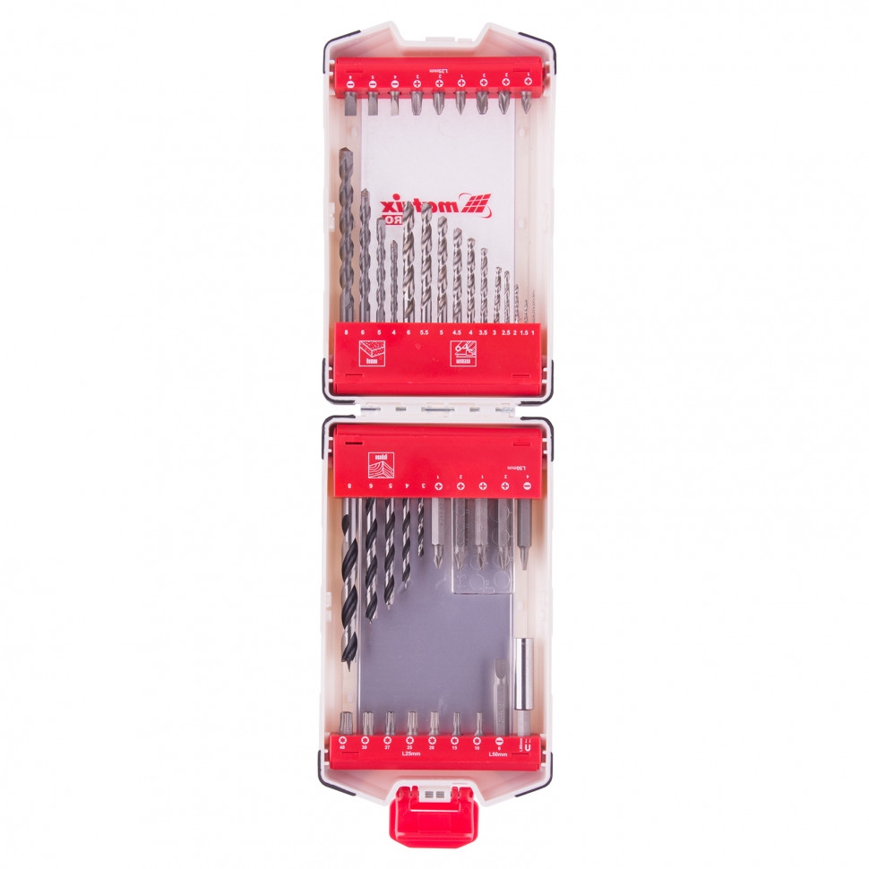 Набор сверл комбинир.. мет.1-6мм.бетон 4-8мм.дер3-8мм.биты 22шт..адаптер.44пр.Matrix