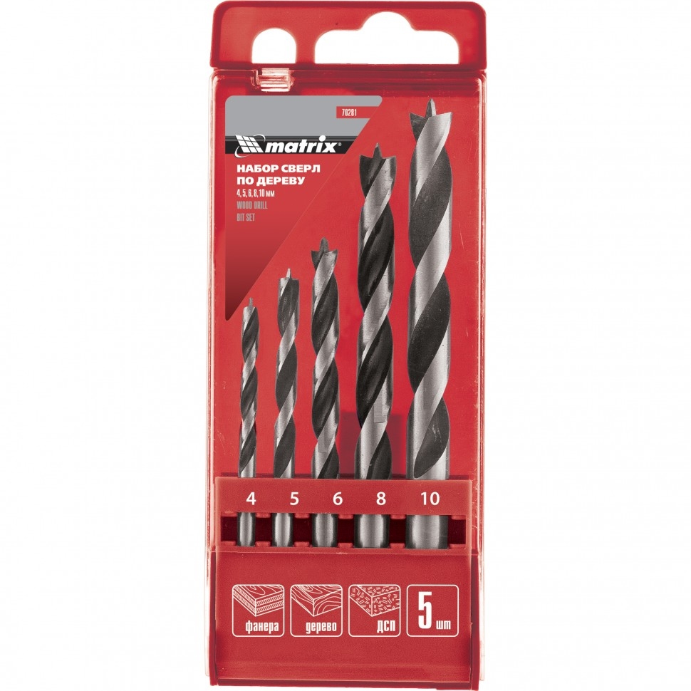 Набор сверл по дереву,цилиндрич. хвостовик,пластик. бокс 5 шт (4-5-6-8-10 мм ) Matrix