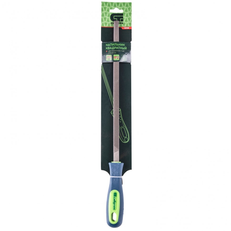 Квадратный напильник Сибртех 15930 с двухкомпонентной рукояткой, длина рабочей части 250 мм, насечка №2, — слесарный инструмент для ручной доводки металлических деталей. Его используют для обработки плоских поверхностей, пазов, отверстий квадратного и прямоугольного сечения. Инструмент со средней насечкой подходит для точной шлифовки изделий после грубой обработки драчевым напильником. Применяется в слесарном деле и в быту. Преимущества Напильник изготовлен из высокоуглеродистой стали У13А, поэтому характеризуется прочностью и устойчивостью к механическим нагрузкам. Двухкомпонентная рукоятка удобно лежит в руке, что повышает комфорт во время работы. В тыльной части рукоятки имеется отверстие, позволяющее организовать подвесное хранение инструмента.