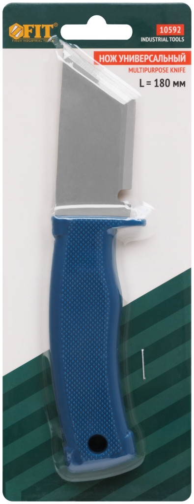 Нож универсальный FIT применяется для резки листовых материалов (кожа, линолеум, резина, шпон, брезент), резьбы по дереву, ремонта обуви и других работ. Эргономичная рукоятка из высококачественного пластика со структурной поверхностью и препятствует скольжению в руке. Лезвие с двумя режущими кромками подходит как для разрезания различных материалов, так и для вырезания пазов и углублений в дереве. Также форма лезвия позволяет резать кожу, линолеум, ткань и другие подобные материалы с середины.