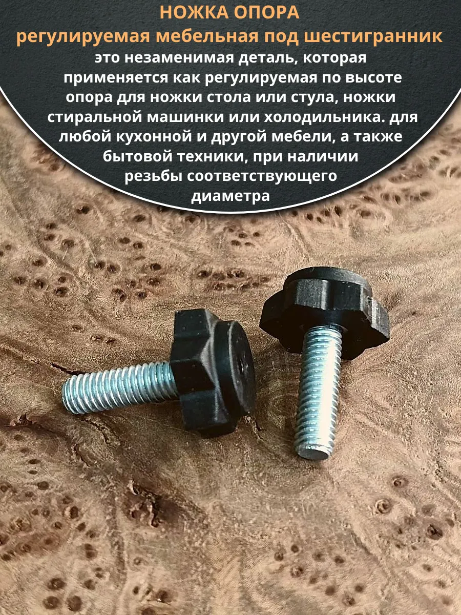 | Ножка опора D19 М6х18 регулируемая мебельная под шестигранник 2 шт | 33-0100ф2 | 1 шт. |