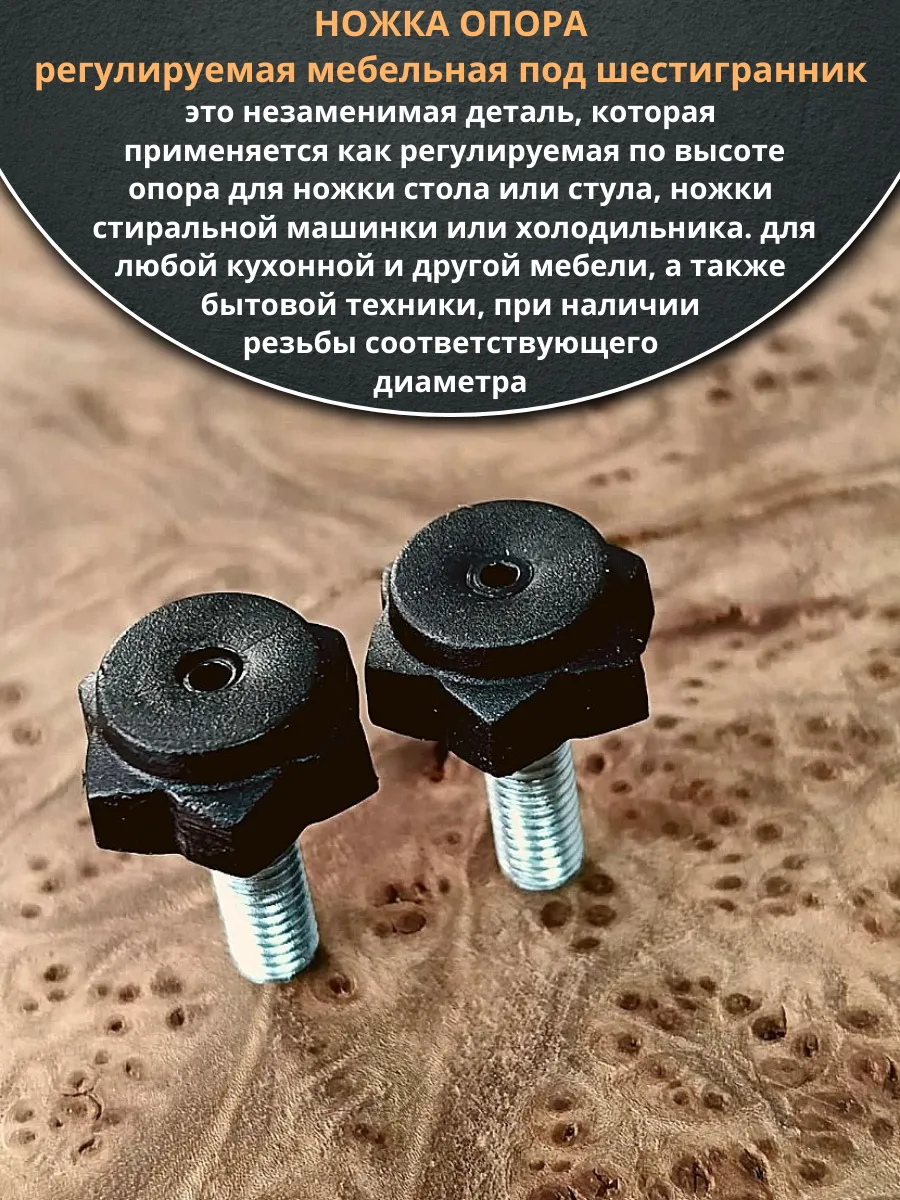 Ножка опора D19 М6х20 регулируемая мебельная под шестигранник 2 шт
