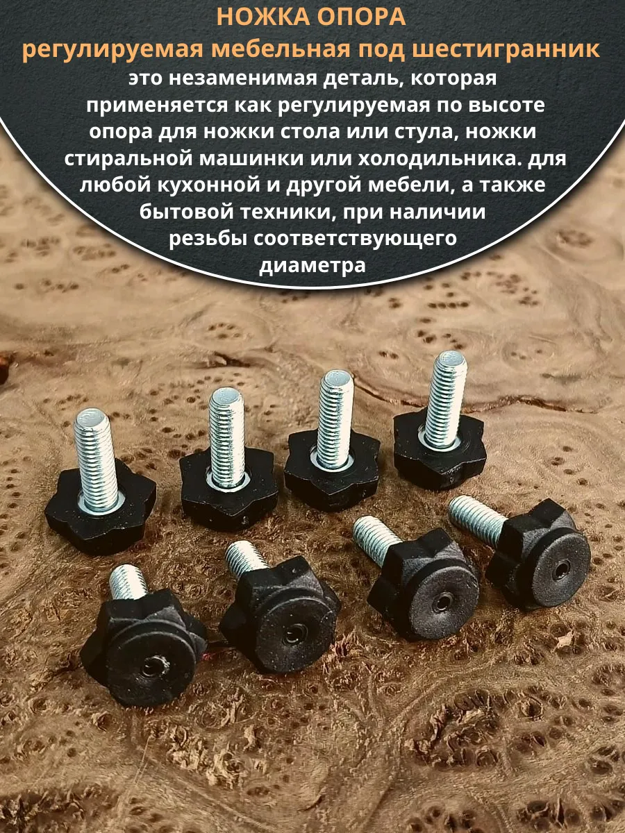 Ножка опора D19 М6х25 регулируемая мебельная под шестигранник 12 шт