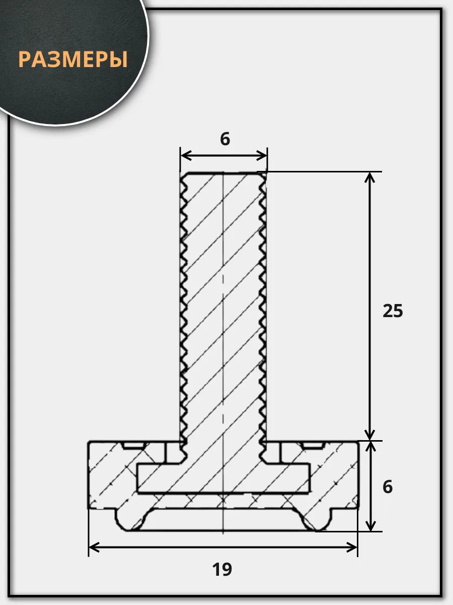 Ножка опора D19 М6х25 регулируемая мебельная под шестигранник
