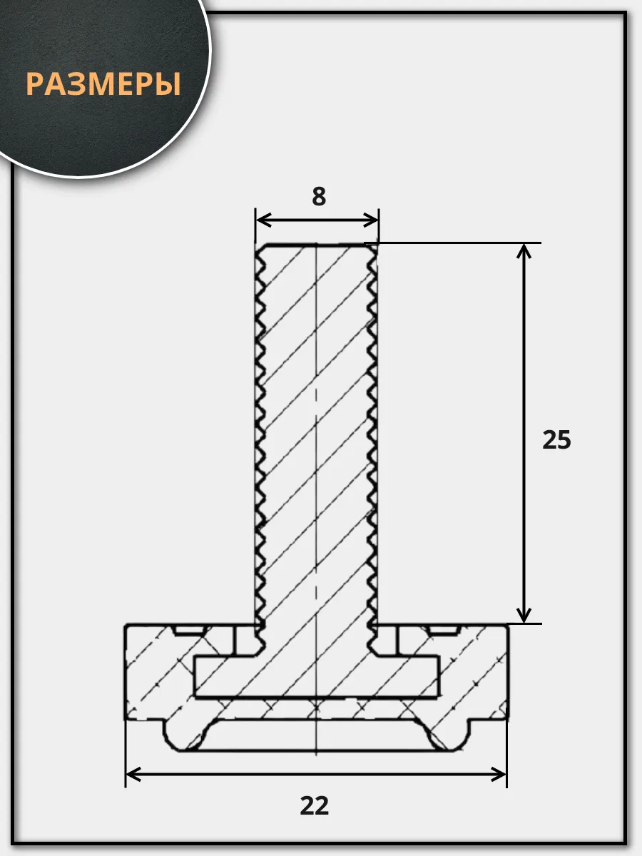 | Ножка опора D22 М8х25 регулируемая мебельная под шестигранник 8 шт | 33-0120ф8 | 1 шт. |