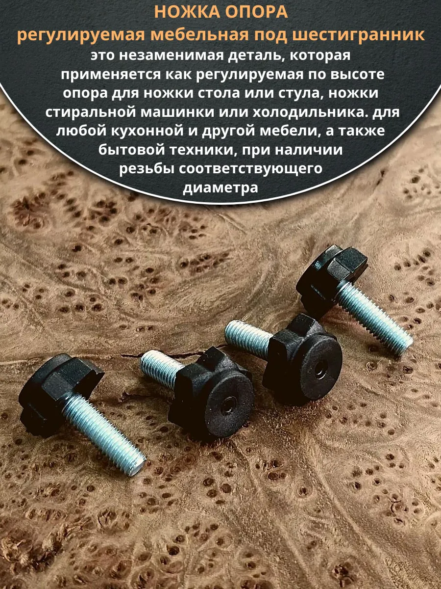 | Ножка опора D22 М8х25 регулируемая мебельная под шестигранник 4 шт | 33-0120ф4 | 1 шт. |