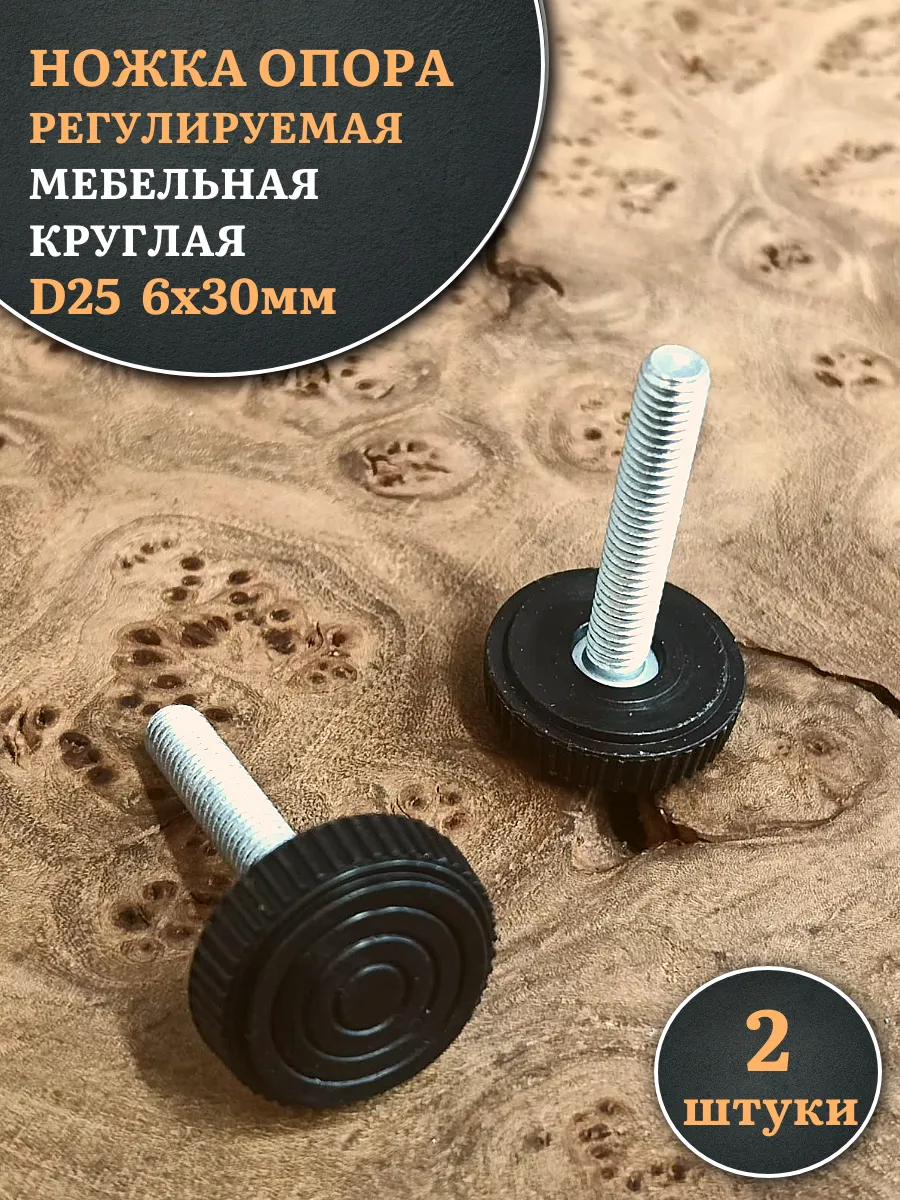 Ножка опора D25 М6х30 регулируемая мебельная круглая 2 шт