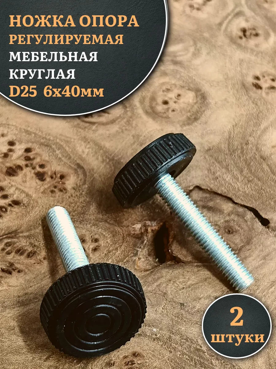 Ножка опора D25 М6х40 регулируемая мебельная круглая 2 шт