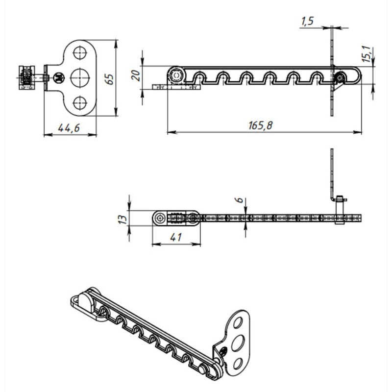 Ограничитель открывания окна 165 мм белый пластмассовый