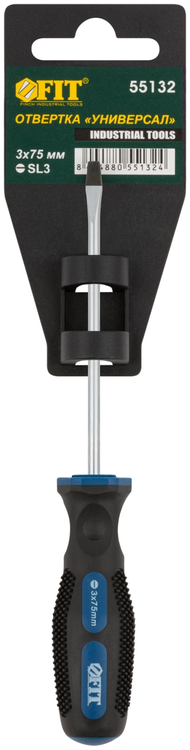 Отвертка Универсал, CrV сталь, прорезиненная ручка, Профи 3х75 мм SL