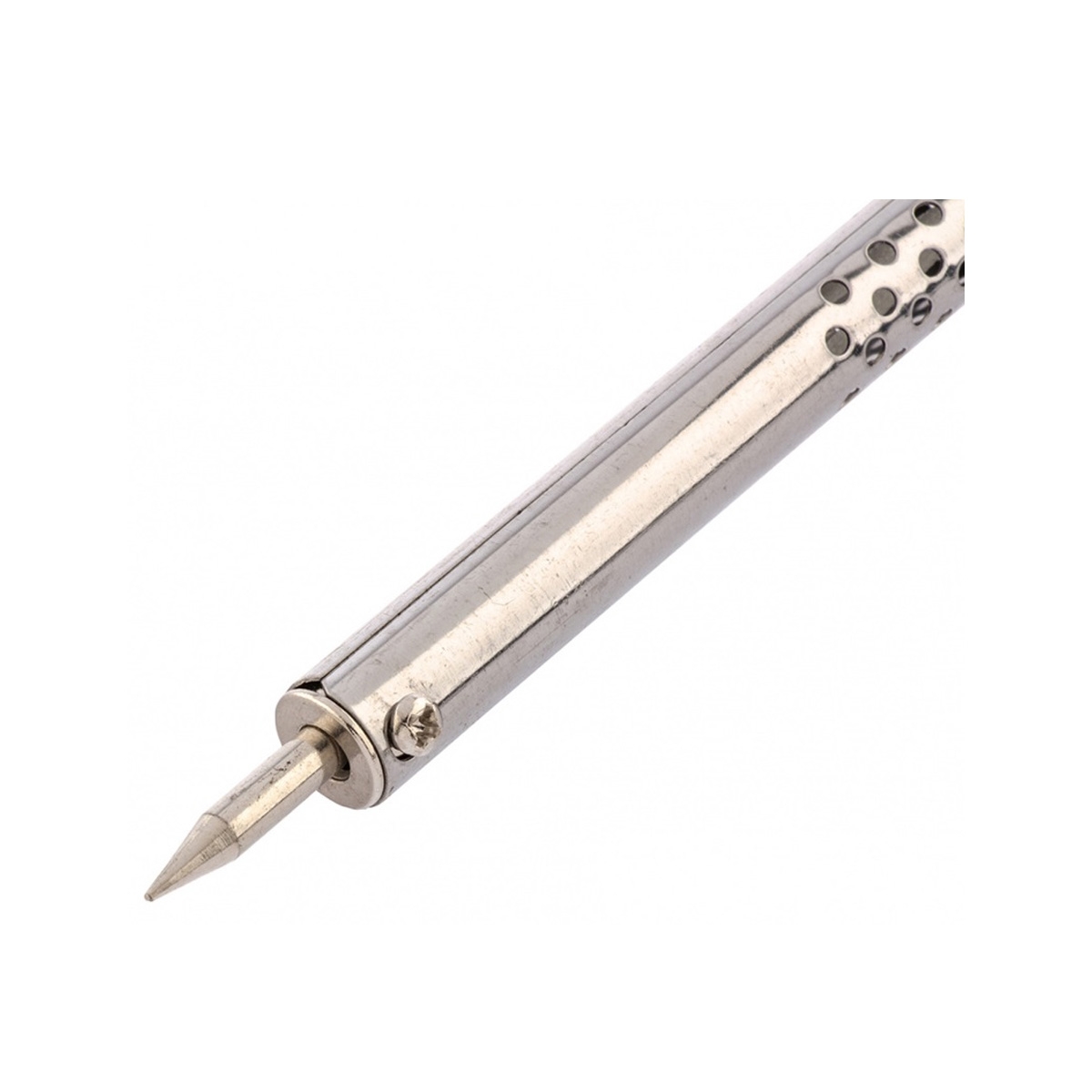 Ручка выполнена из дерева. Паяльник имеет слабый нагрев рукоятки.