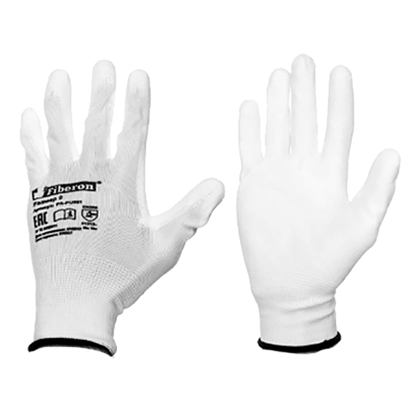 Перчатки полиэстеровые PSV036P белые с ПУ покрытием, размер L (9), Fiberon