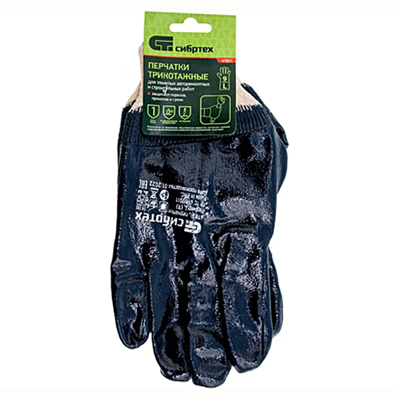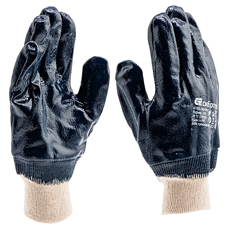 Перчатки трикотажные с обливом из бутадиен-нитрильного каучука, манжет, размер L, Сибртех