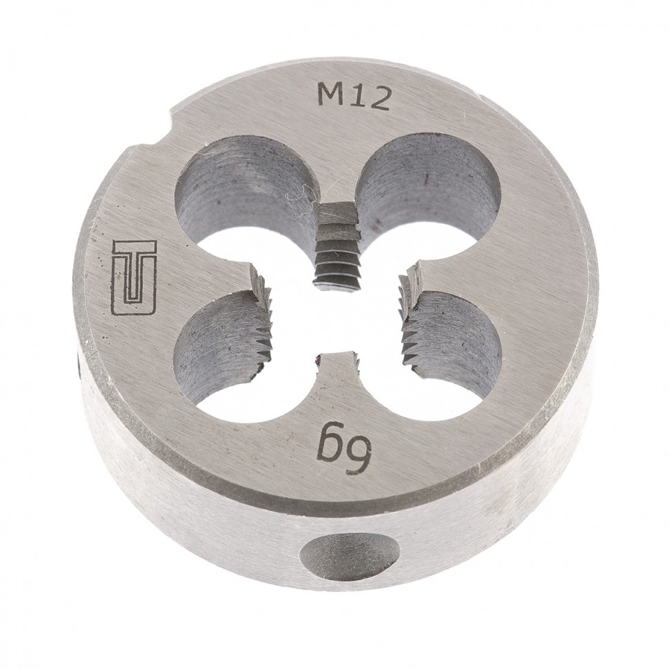 Плашка Сибртех 77032, М12 х 1,75 мм, поможет нарезать внешнюю метрическую резьбу. Она проста в использовании, поэтому пригодится в быту при проведении слесарных и монтажных работ даже начинающим мастерам. Цельная конструкция плашки позволяет полностью захватывать деталь и нарезать ее за один проход, благодаря чему получается высокоточная и качественная резьба. Надежность и долговечность — плашка изготовлена из инструментальной стали 9XC.
