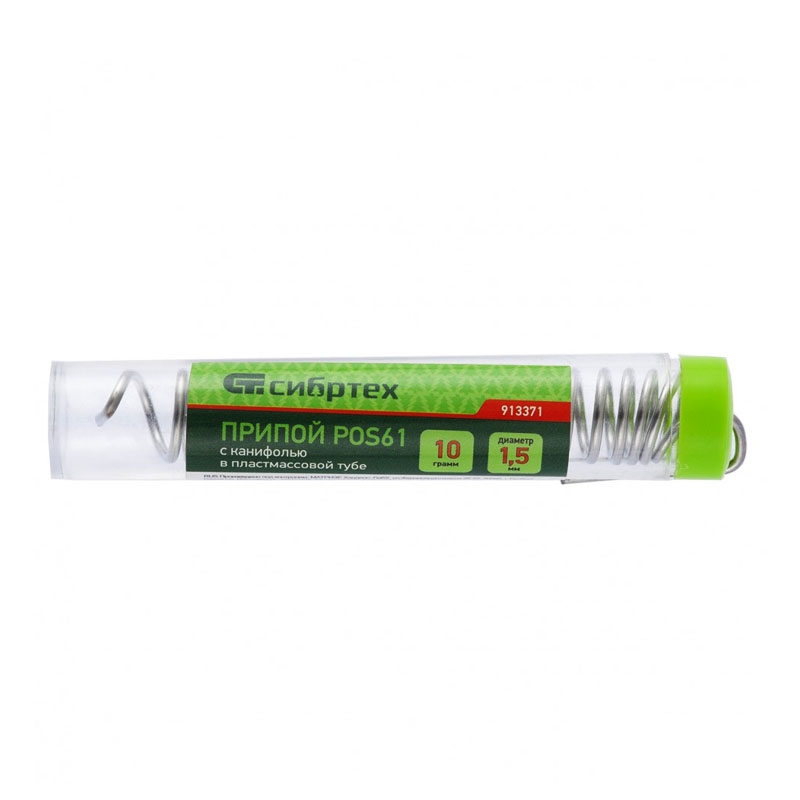 Припой с канифолью D 1,5 мм, 10 г, POS61, в пластмас.тубе Сибртех 913371 1 шт.